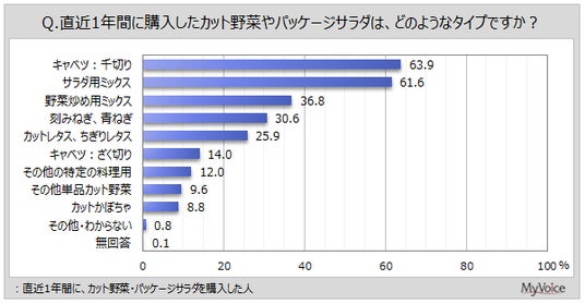 直近1年間にカット野菜・パッケージサラダを購入した人に、購入したタイプを聞きました(複数回答)。