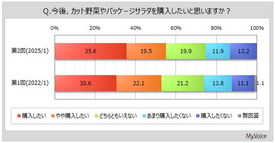 マイボイスコム株式会社(東京都千代田区、代表取締役社長:高井和久)は、2回目となる『カット野菜・パッケージサラダ』に関するインターネット調査を2025年1月1日~7日に実施しました。調査結果をお知らせいたします。