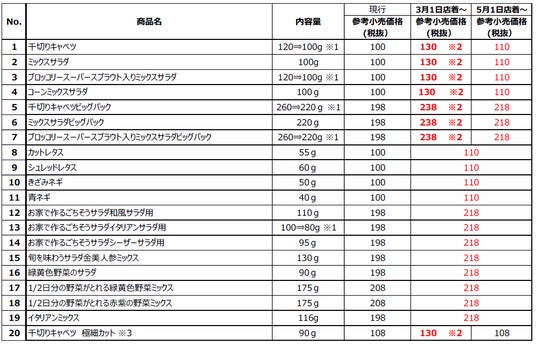 昨今の弊社商品の主要原料であるキャベツやレタスなどの野菜原料が生育不足により原料価格高騰と継続的な原材料価格、資材費、エネルギー費、人件費等の上昇という厳しい環境の中、当社ではこれまで継続して合理化と経費節減を推進してまいりました。しかしながら、企業努力だけでコスト上昇分を吸収することは極めて困難な状況となり、価格改定を実施せざるを得ないと判断しました。