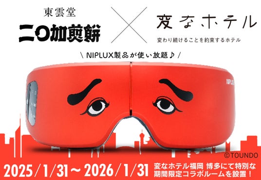 2025年1月31日(金)より、福岡県の「変なホテル福岡 博多」にて、福岡を代表する老舗菓子メーカー・東雲堂の「にわかせんぺい」とタッグを組んだ、特別なコンセプトルームが期間限定で登場します。NIPLUXからは期間中、人気の美容機器を当客室に多数導入!