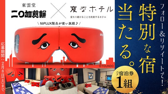 「変なホテル福岡 博多」×「東雲堂にわかせんぺい」×「NIPLUX」のトリプルコラボを記念して、特別キャンペーンを開催!ここでしか体験できない驚きと癒しの空間を、あなたにプレゼント。