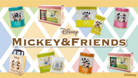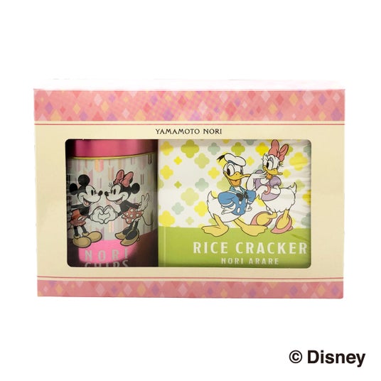 今回は春の訪れをイメージした鮮やかな色合いと、日本の伝統的な食品である海苔をイメージした和柄を組み合わせた限定デザインで販売いたします。ミッキー&ミニー、ドナルド&デイジーがペアで描かれ、キュートなポーズにも注目です。ミッキー&ミニーが描かれた専用の紙手提げ付きです。バレンタインデーやホワイトデーのギフトにもおすすめの商品です。