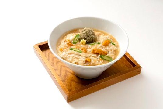 かつお節だしと雲丹の風味豊かなにゅうめんです。素麺には葛粉が練りこまれているのでのどごしなめらかに召し上がりいただけます。お好みでおろし生姜を溶かして召し上がりください。
