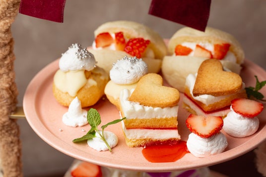 バレンタイン限定♪新宿で人気のアクアリウムダイニング「新宿LIME」が贈るラブベア-LOVE BEAR-のアフタヌーンティープランが登場。苺のマリトッツォやレアチーズケーキ、ホワイトチョコと苺のタルト等が楽しめる華やかなスイーツとセイボリー全10種を心ゆくまで堪能して。さらに紅茶だけでなく、ワインも飲み放題なのもうれしいポイント。