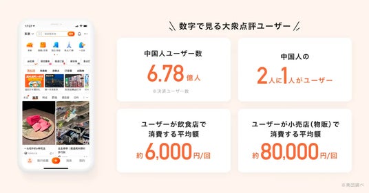 大衆点評ユーザーは消費力も強く、大衆点評を見て訪れた飲食店の平均消費額は約6,000円*3で、小売店(物販)では約80,000円*3となっています。広告機能もあり、中国人集客・インバウンド対策において重要なサイトです。