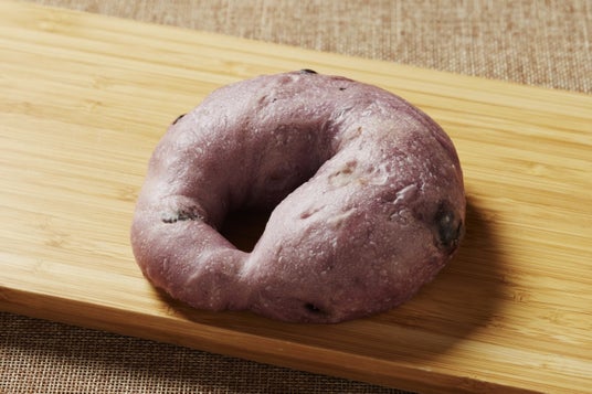 たっぷりのドライブルーベリーと果汁が練り込まれたマーブル生地のベーグルは、もっちり、しっとりとした食感。フルーティーな香りとほのかな甘さが口の中に広がります。