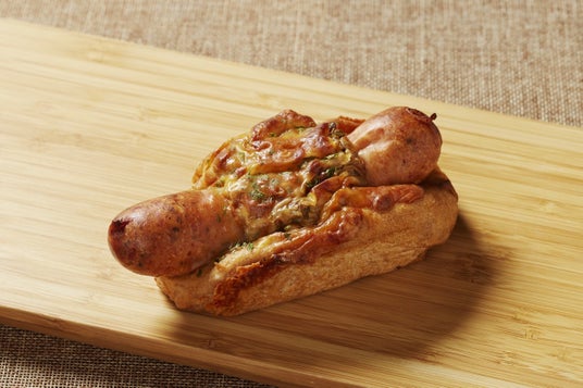 小麦全粒粉”春よ恋”(北海道産)100%配合の、しっかりした食感の生地に、パンからはみ出すほど肉厚なバジル入りポークソーセージをはさみました。たっぷりのせたトマトタルタルソースとチーズ、表面はパリッ&中はジューシーなソーセージ、食感のアクセントにもなるピクルスのバランスがよく、食べ応えのあるお総菜パンです。