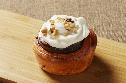 練乳を加えたほんのり甘い生地に、シナモンクリーム、3種のナッツが香ばしい定番のシナモンロール。温めてお召し上がりいただくとトッピングのクリームが溶けて、さらに美味しくお召し上がりいただけます。