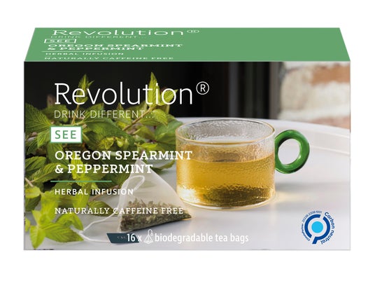 【スペアミント&ペパーミント】スペアミントとペパーミントをブレンドしたハーブティーです。上品でありながらすっきりとした清涼感が特徴です。アイスティーにするのもおすすめです。 *ノンカフェイン。