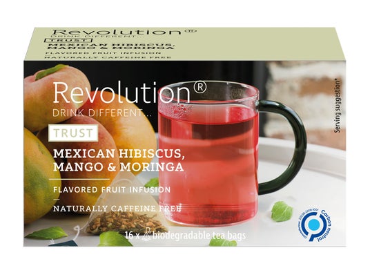 【ハイビスカス、マンゴー&モリンガ】モリンガとマンゴーのさわやかな甘みに、ハイビスカスの酸味を加えた南国のリゾートを思わせるフルーツティーです。アイスティーにするのもおすすめです。 *ノンカフェイン
