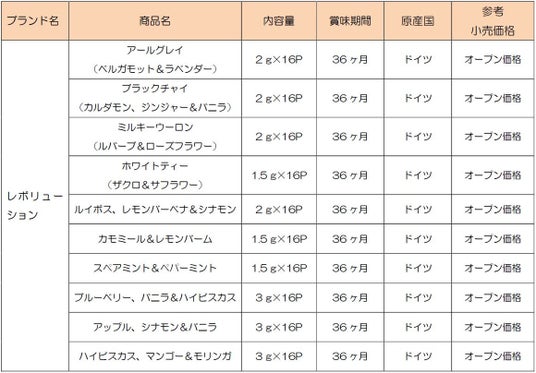 株式会社nakato(ナカトウ、本社:東京都港区麻布十番1-5-30、代表取締役社長:榎本隆司)は、nakato selectionより、ドイツの紅茶メーカー「ライフブランズ社」の『Revolution(レボリューション)』を発売いたします。伝統的なオーソドックス製法で加工された茶葉を独自にブレンドし生まれた、香り高く豊かな味わいの紅茶やハーブティーを10種類ご用意いたしました。