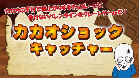 「カカオショックキャッチャー」とはカカオショックの影響で高騰しているチョコレートの代替品となりそうな商品を景品にしたクレーンゲームになります。