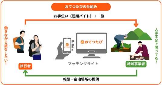 「お手伝い(短期アルバイト)」と「旅」を組み合わせた人材マッチングサービスです。