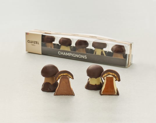 詳細:現オーナーの祖父である初代マーク クルイゼルが考案した、かわいらしいキノコ型のショコラ。50年以上門外不出の特別なレシピで作られています。傘の部分はカリカリ食感の自家製ヌガティーヌをダークショコラでコーティングし、幹の部分はモチモチの自家製キャラメルや、ヘーゼルナッツが香ばしいジャンドゥーヤをしのばせてあります。