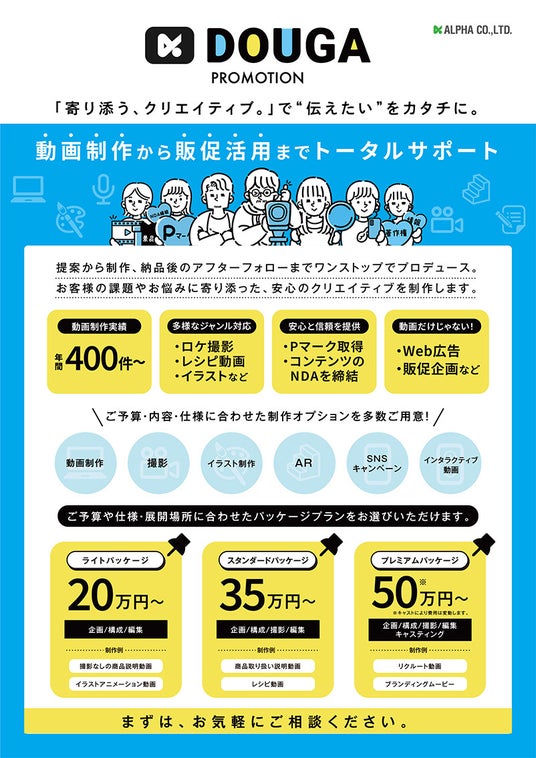 【 今回出展のポイント2. 「動画POP」 】 動画POPは、情報を的確に分かりやすく、臨場感とともに訴求できるデジタルコンテンツです。訴求対象の紹介リーフレットや、商品パンフレットデータをご支給いただくだけでも、動画POPの制作は可能です。さらに、スマホやタブレット上でタッチし選択や画面遷移していく「インタラクティブ動画」も展開しています。