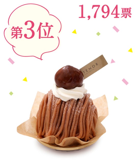 レモンのタルトと接戦を繰り広げたモンブランは惜しくも3位!香り高いヨーロッパ産栗のマロンペースト3種類に更にマロンクリームをブレンドした濃厚なモンブランクリームが一押しポイントです!