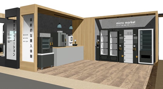■革新的な購入体験ゾーン工場やオフィス内など小さな商圏であるマイクロマーケットに向けた提案です。今回、オフィス内での利用シーンに対し当社技術を活用し「革新的な購入体験」として省人化の提案をします。新たにスタンドアローン型のセルフ決済機能付きのショーケースと、アプリで注文した商品の「受け取り」などができる「受け渡し冷蔵ロッカー」の他、産学連携でAMR(自立走行搬送ロボット)を搭載し、障害物を避けながら自由に移動し、指定された場所で販売できる移動型自動販売機(参考出品)を展示します。
