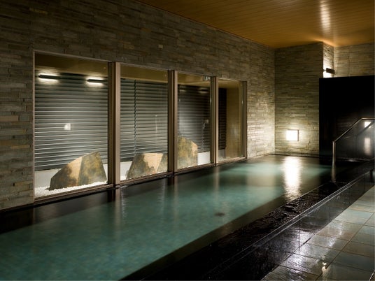 館内にある大浴場は、岡山県の中央部にある阿部鉱山から産出された天然鉱石「光明石」を使用した人工温泉を採用、カルシウムやマグネシウムなど11種の溶出成分が肩こりや冷え性、疲労回復などに効果があるとされており、ご滞在中何度でもご使用いただけます。