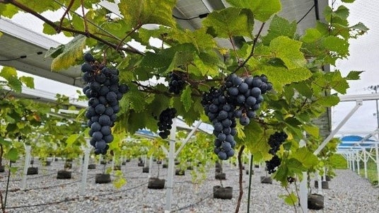 根域制限栽培とソーラーシェアリングで栽培されたぶどう