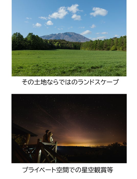 ・空間、風景、食、おもてなしなどの宿泊サービスを通じ、その土地や訪れる季節ならではの新しい体験や発見を提供。