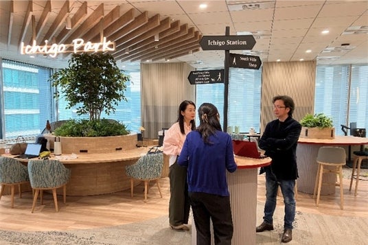 フリーアドレスの「Ichigo Park」ではスタンディングミーティングが開催される