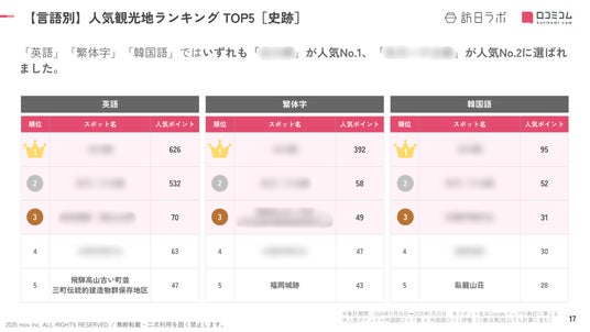 ここからは、独自調査で明らかとなった人気観光地の分析結果を一部ご紹介します。