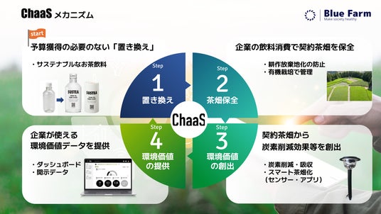 社会とお茶の新しい繋ぎ方をつくる、Blue Farm株式会社(本社:静岡県浜松市 代表取締役社長:青木 大輔、以降は当社)は、茶畑のサブスクサービス『ChaaS(茶畑 as a Service):https://chaas.jp』を2025年2月14日(金)にリリース致します。