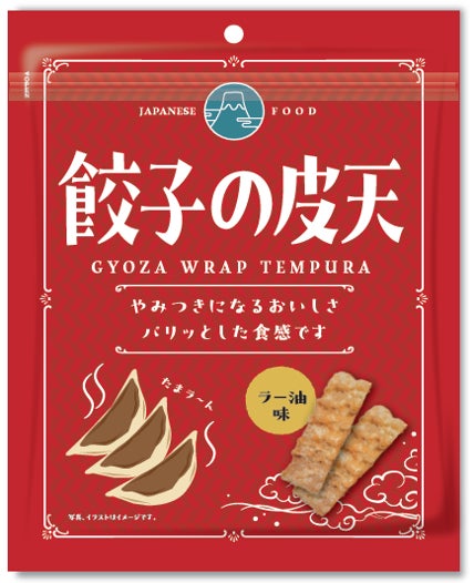 そして、引き続き人気の同シリーズ「餃子の皮天 ラー油味」「のり天 プレーン味」も発売中。