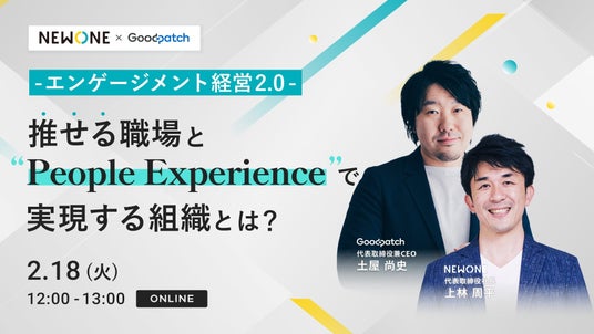 エンゲージメント向上を軸とした組織開発・人材育成コンサルティング支援を通して“推せる職場づくり”を進める株式会社NEWONE(本社:東京都千代田区 代表取締役:上林周平、https://new-one.co.jp/ 以下、NEWONE)は、2025年2月18日(火)12:00~13:00にて、株式会社グッドパッチ 代表取締役兼CEO 土屋 尚史氏をお迎えし、「エンゲージメントが高まり、企業価値が向上する施策のポイント」をオンラインセミナーで語らいます。