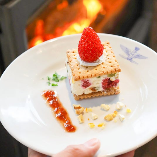 フレッシュ苺とアイスクリームを盛り付けしました。