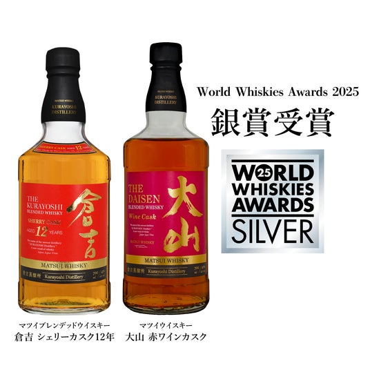 また、マツイブレンデッドウイスキー「倉吉 シェリーカスク12年」とマツイウイスキー「大山 赤ワインカスク」が銀賞を受賞しております。