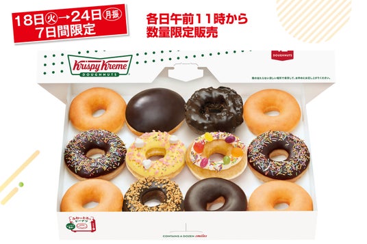 期間限定のドーナツと一番人気のオリジナル・グレーズド(R)やレギュラードーナツが入ったお得な「おすすめ! ダズン」が数量限定販売。