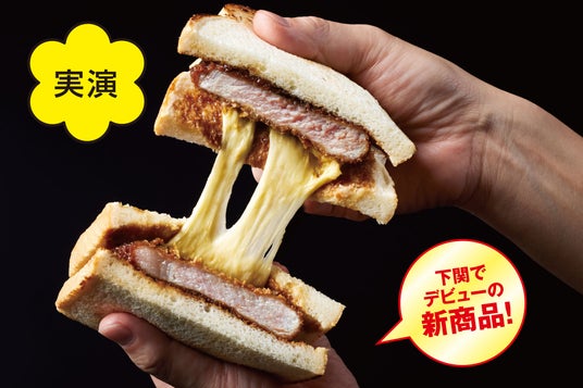 下関でデビューの新商品!国産希少豚アボカドポークの特上カツにトロットロのスクランブルチーズエッグを贅沢にサンド!