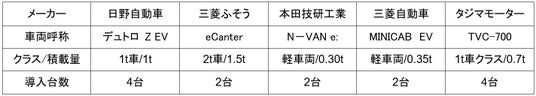 そしてこのたび、ラストワンマイル向けに国内モビリティメーカー5社から導入した5種14台のEVの走行を開始します。これにより、EVへ切替予定台数中13.2%の進捗となります。導入車両は0.3t~1.5tの積載重量で、当社ECサービスにおける都内の配送用として稼働します。