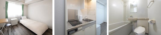 本アカデミーは、独自のプログラムを実現するため、ホテルの洋室、和室を再現したモックアップルームを完備しています。また、冷暖房・ミニ冷蔵庫・トイレ・バス・Wi-Fi完備のお部屋は1人1部屋の個室利用のため衛生的で安心です。その他施設内にはランドリールーム、庭園には実習生同士のコミュニケーションを深めることができるBBQテラスを備え、実習生が長期滞在でもプライバシーを守りながら快適に学習に集中できる環境が整っています。