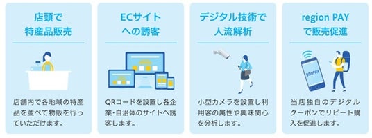 次世代アンテナショップ『Giftpad space~日本の魅力をつむぐ~』は、地域経済の活性化を目指し、日本のあの町この街をデジタルでつなぐ場として、店内の区画を “日本のいいもの”をお持ちの企業や自治体にお貸しししております。ご出店いただく企業さまには商品の一般販売に加え、サンプリングや試食・試飲、来場者データも取得できるアンテナショップで今後の販売促進施策や商品の品揃え、ユーザーエクスペリエンス向上にご活用頂くことが可能です。