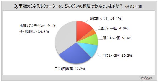 週1回以上の飲用者は3割弱、ミネラルウォーター飲用者の4割強となっています。