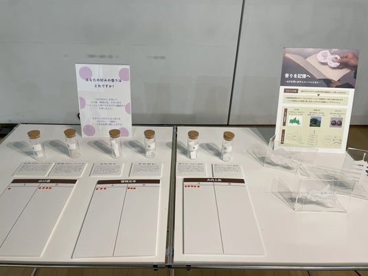 さらに、山口情報芸術センター(YCAM)が主催する「コロガルあそびのひゃっかてん」と連携し、創出した香りをもとにイメージした絵も制作しました。