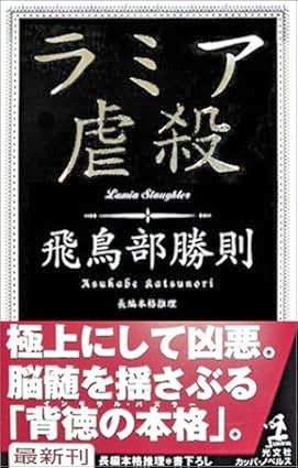 光文社様は飛鳥部勝則先生の長篇作品を3作お持ちであり、そのうち文庫の2作『砂漠の薔薇』『冬のスフィンクス』を電子書籍で継続して配信していらっしゃいます。飛鳥部作品が読みたいけれどなかなか手に入らないという悩みを抱えたファンにとって、そのことがどれほど心強いことだったか。今回はついに残りの1作、電子書籍にもなっていなかったノベルス作品の待ちに待った文庫化・再発売となります。『ラミア虐殺』は様々な飛鳥部作品と繋がっている(ようにも見える)、重要な作品です。多ジャンルの集合であり、驚きに満ちたここからの飛鳥部作品の傾向を、カテゴライズに悩んだ熱心なファンの皆様は「涅槃」と表現したとか。あまりの衝撃に涅槃に至るような強烈な読書体験をどうぞお楽しみください。