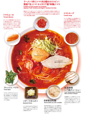 ふんだんに加えたフレッシュトマトの酸味と、鶏ガラとんこつスープの旨味との絶妙なバランスで、香り高い後味に。