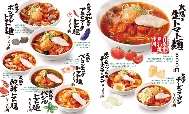 このたびのリニューアルで、「太陽のトマト麺」は“生トマトラーメン専門店”へと進化いたします。コンセプトは、“生”のトマトだからこそ味わえる新鮮さ。メニューを一新し、新たに原料に加えた国産生トマトの果肉をトマトラーメン全品で贅沢に使用。もぎたてのトマトを頬張ったときのような、口いっぱいに広がるみずみずしさと、爽快な酸味。“太陽の恵み味”をより一層極めることで、これまで以上に心とカラダに潤いを届け、笑顔と活力につながるお店を目指しています。