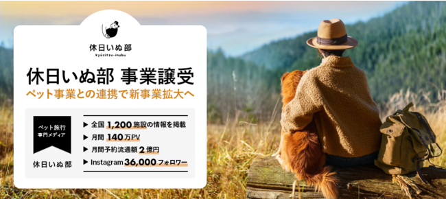 株式会社イオレ(本社:東京都中央区、代表取締役社長:冨塚 優、以下イオレ)は、2023年1月6日にオモイデノ株式会社(本社:大阪府大阪市 代表:畑中 大貴、以下オモイデノ)が運営するペット旅行に特化した情報を提供するペット旅行専門メディア「休日いぬ部」の譲り受けることを決議し、2月1日に事業を譲受いたしましたことをお知らせします。