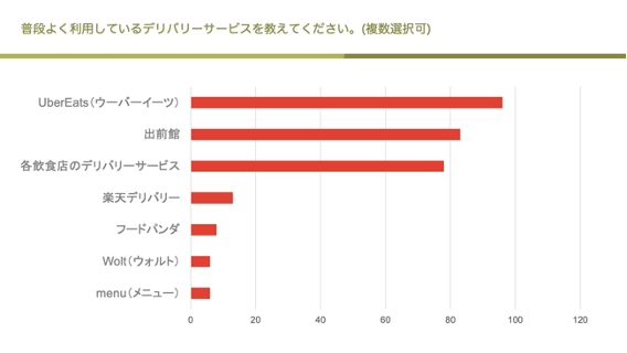 ◇よく使われるサービスは「UberEats」「出前館」「各飲食店デリバリー」