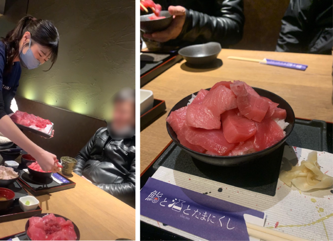 宮崎市は1月21日からまん延防止等重点措置が適用され、翌1月22日には日向灘沖で最大震度5強の地震が発生しました。新型コロナウィルスの感染者数増加と地震の余震と2つの不安を抱えながら過ごしている宮崎県民のために、株式会社藤ノ家として何かできることはないか考えました。そこで、新型コロナウィルス感染症拡大防止協力金で長崎県産生本まぐろを1本買いし、宮崎の皆様にお得で美味しい生本まぐろを食べて元気になって欲しいという思いから、『朝だけ乗せ放題 切り落とし生本まぐろ丼』の提供を決定いたしました。