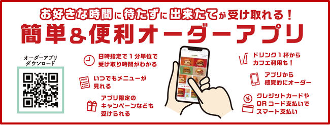 新作のチキンバーガー&バランスセットがオーダーアプリ(テイクアウト)で更にお得に楽しめます。単品でもセットでも100円引き!もちろんお得なだけでなく、お好きな時間にお店で待たずに出来たてが受け取れますので、お仕事の休憩中など限られた時間で、レジに並ぶことなく自分時間を有効に使えます。