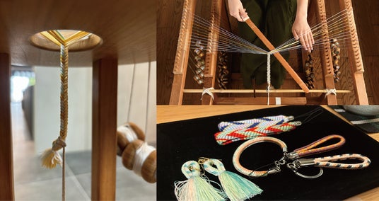体験は、有職組紐道明が運営する『Kumihimo Experience by DOMYO』が手掛けます。道明は370年を超える歴史があり、歴史的な組紐の研究だけでなく、日常使い用から儀礼等に使用できる紐の製作も行っています。また、組紐を世界へ広げるため、海外での展示会への参加や洋装ブランド『DOMYO』もプロデュースしています。