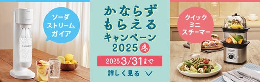 ・期間中に新規ご入会いただくと「ソーダストリーム ガイア」または「ラッセルホブス クイックミニスチーマー」からお好きな商品いずれかをもれなくプレゼントいたします。