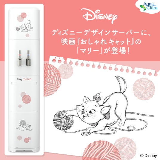 水を通じて“生活”“環境”“健康”の創造を目指すアクアクララ株式会社(代表取締役社長:藤井 靖之、本社:東京都港区)は、この度、世界中で愛されているディズニー/ピクサーキャラクターをデザインした人気のウォーターサーバー『ディズニー/ピクサーデザイン サーバー』から「ディズニー マリー」デザインを新たにリリース。2025年2月18日(火)よりお申込み受付を開始いたします。アクアクララの人気機種アクアファブのホワイトをベースに、スケッチタッチの愛らしい猫の“マリー”が、ころころと転がる毛糸玉と戯れています。毛糸玉にはクリア加工が施され、さりげないアクセントをプラス。お部屋に優しくなじむ、温かみのあるデザインです。