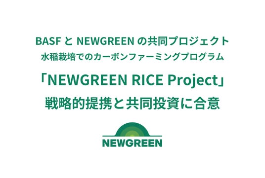 株式会社NEWGREEN(本社:東京都小金井市、代表取締役CEO山中 大介、代表取締役COO 中條大希)とBASFジャパン株式会社(本社:東京都中央区、代表取締役社長:石田 博基、以下「BASF」)は、日本の水稲栽培におけるカーボンファーミングプログラム実現に向けた戦略的提携および共同出資に合意しました。