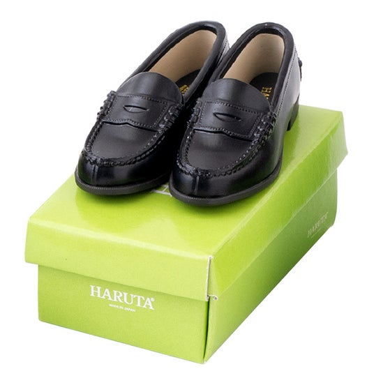 学生靴の定番、「HARUTA」のローファー。ステッチや甲の反りなど細部までこだわり抜いて再現しています。全種箱つきです。